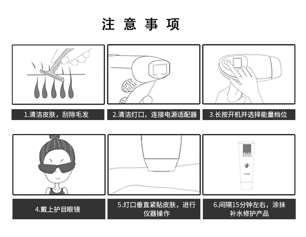 全身脫毛 · 單閃OR連打 · 智能膚色檢測(cè) · 靜毛不反復(fù) · 50萬(wàn)次閃光